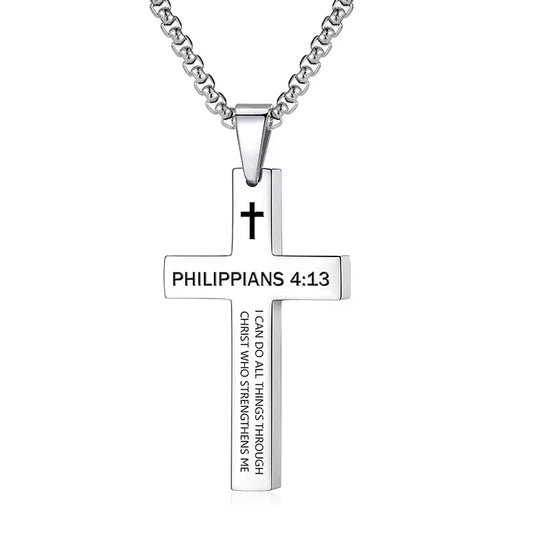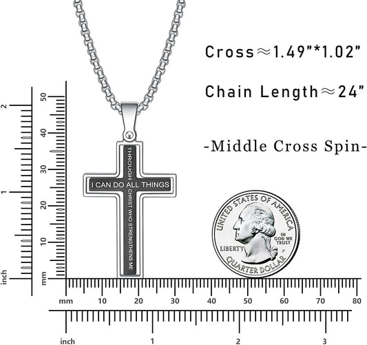 Cross Necklace for Men, Philippians 4:13 Christian Cross Stainless Steel Necklaces for Men