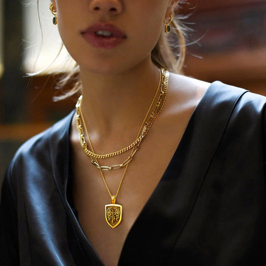 Shield Pendant Amulet Necklace for Mens Saint Michael the Archangel Pendant Gold Plated Catholic Stainless Steel Jewelry for Son Father