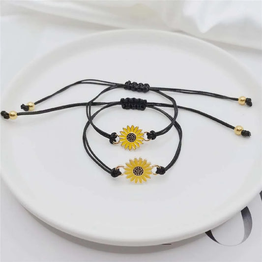 Temperament Black String Sunflower Bracelet for Love and Friendship - Woven Fashion Jewelry for Couples / Friends