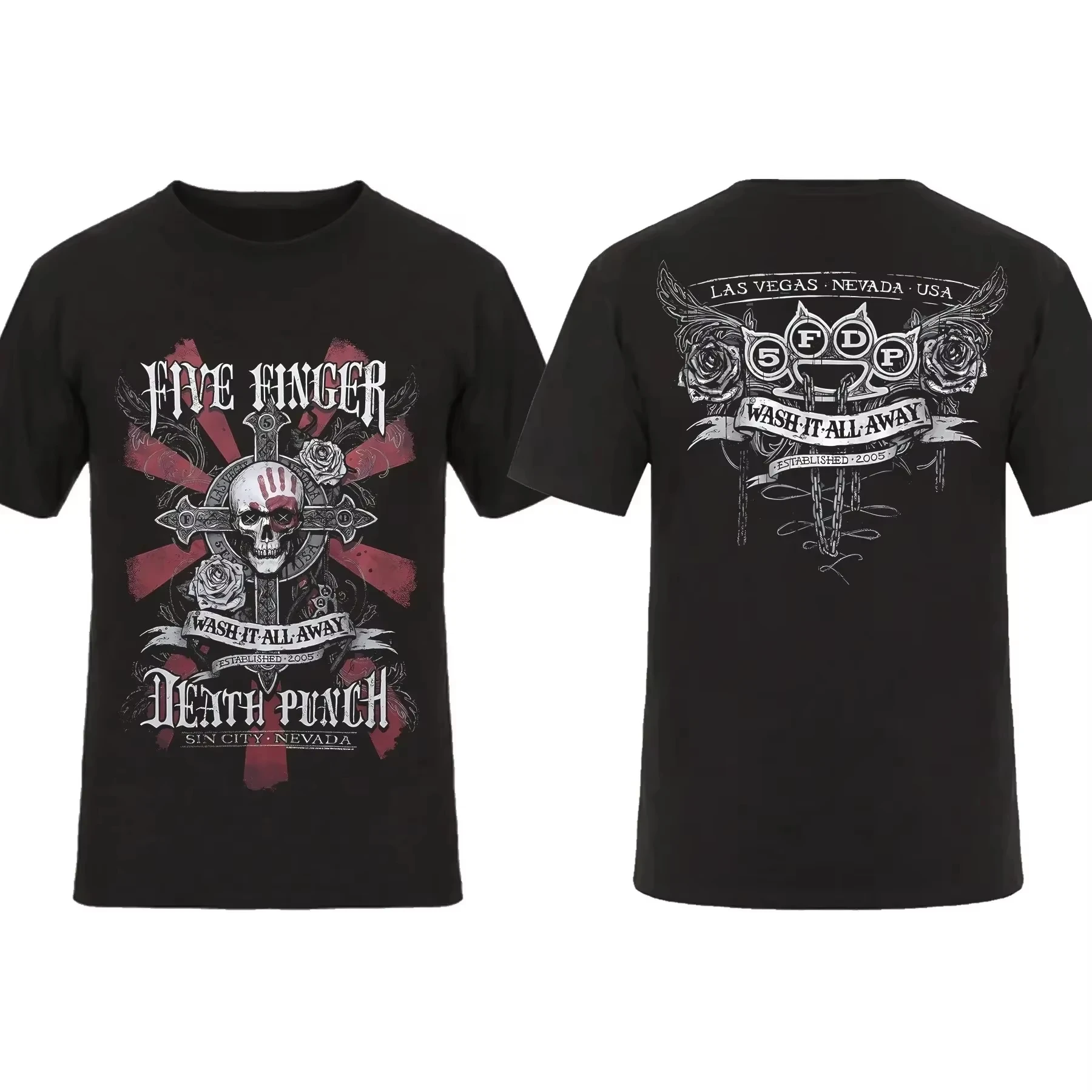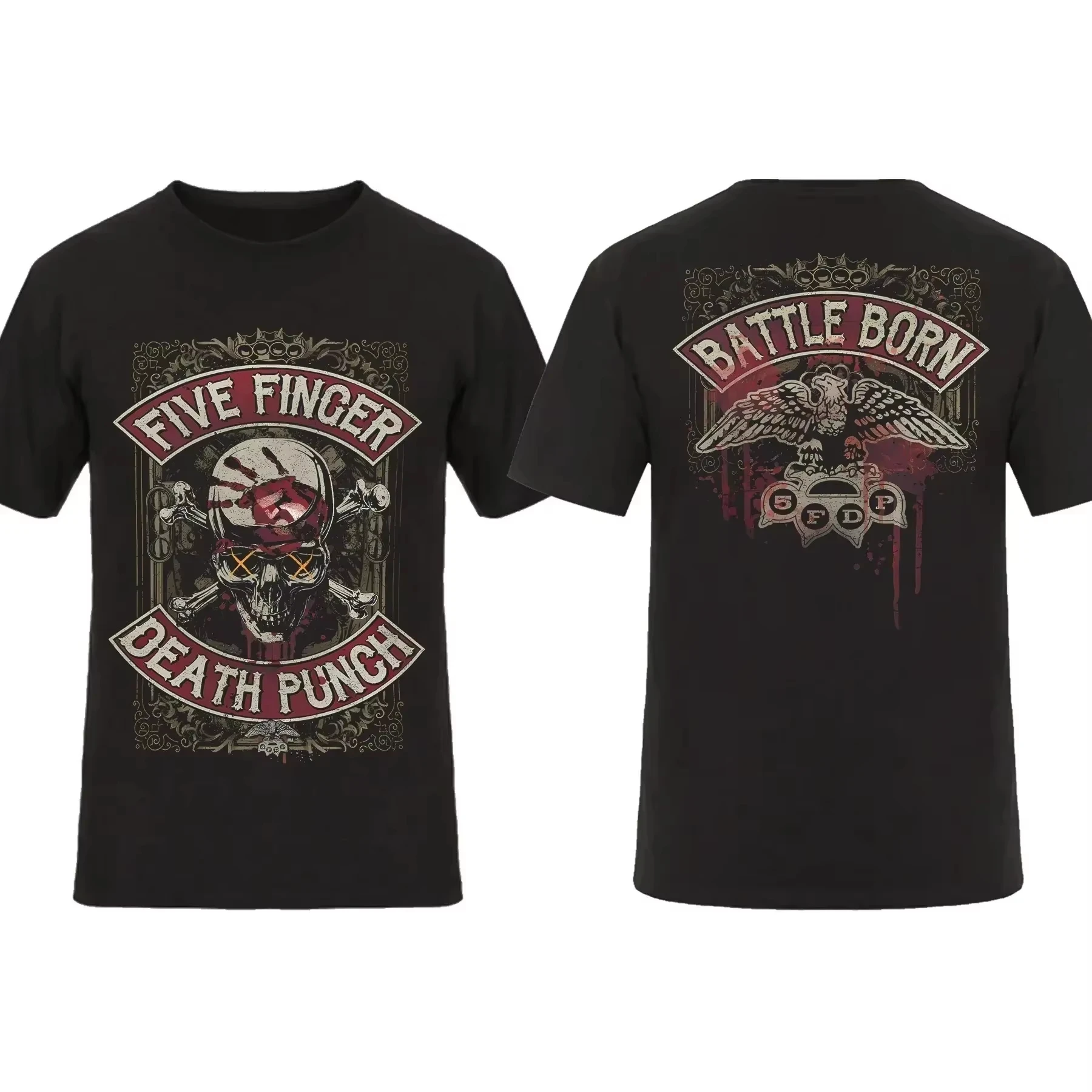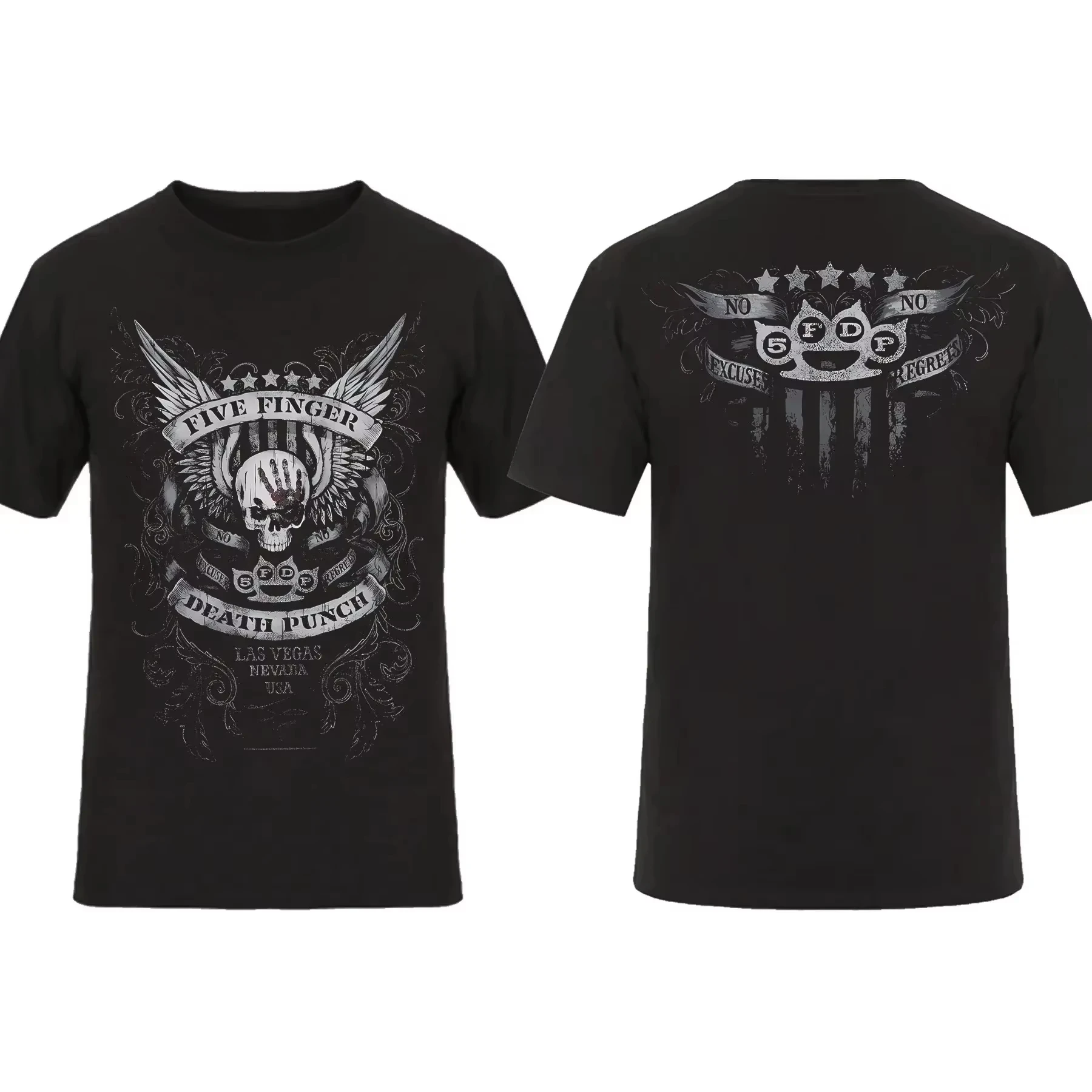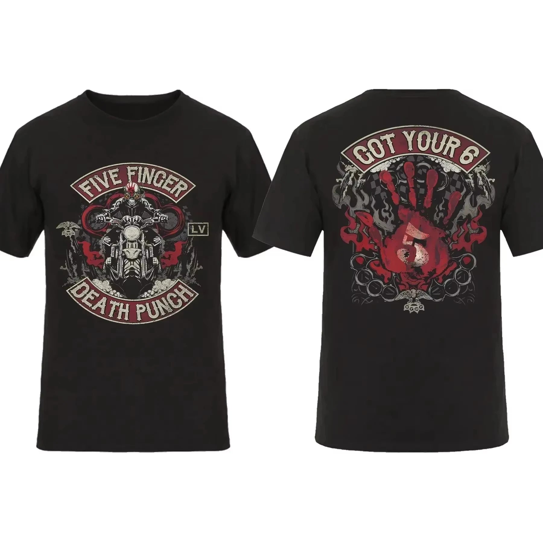 2025 Fashion Men T Shirt Double-sided Biker Skully Black By Five Finger Death Punch T-shirt Graphic Youth Cloth Streetwear S-3XL