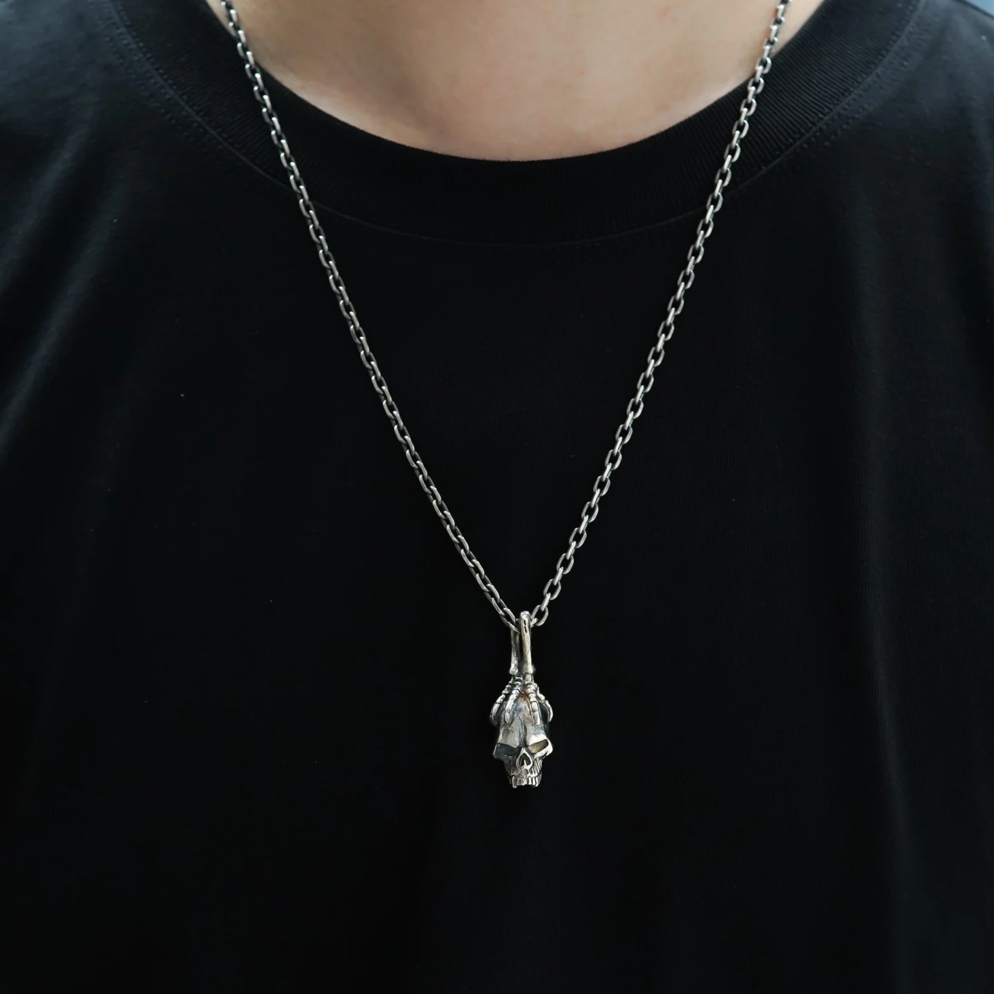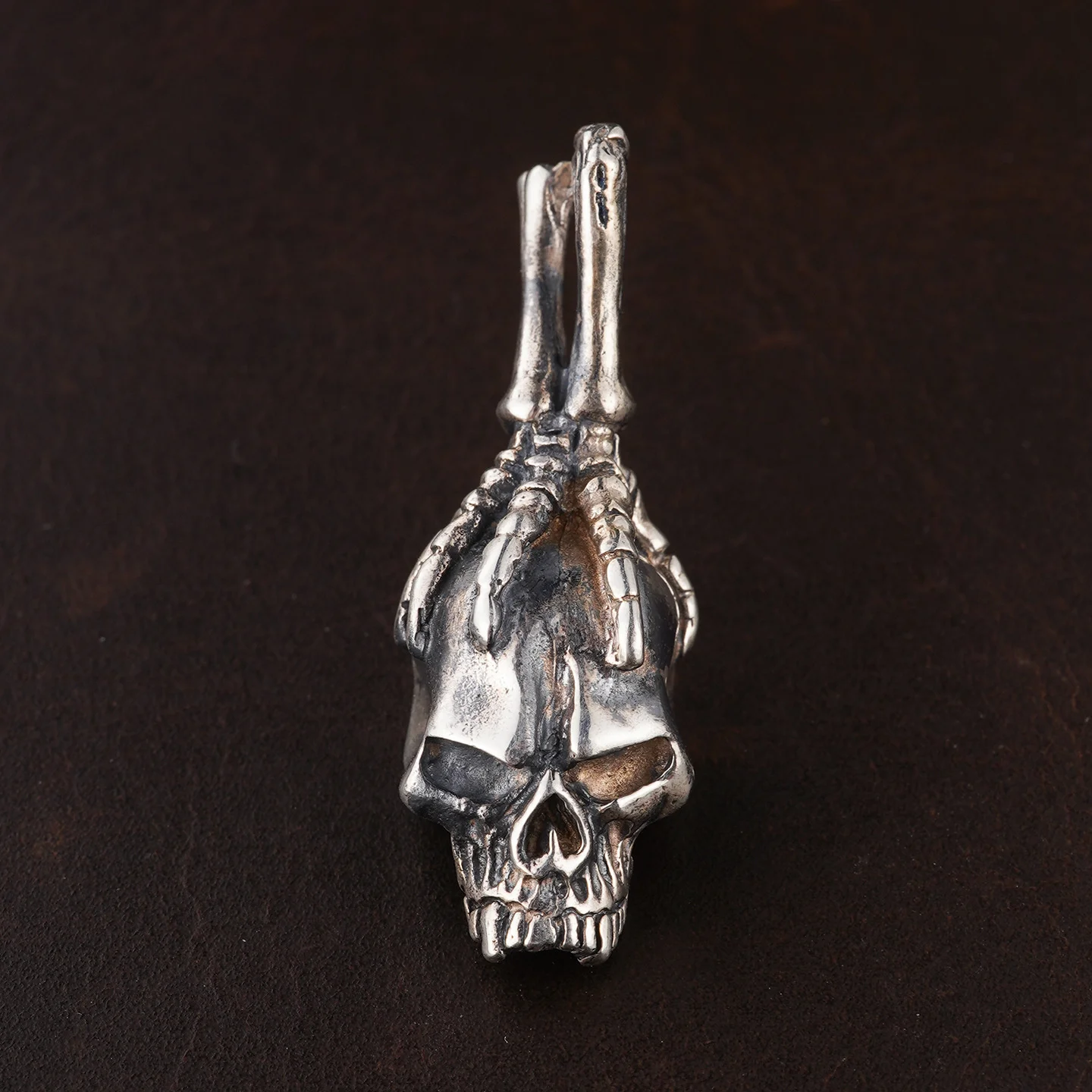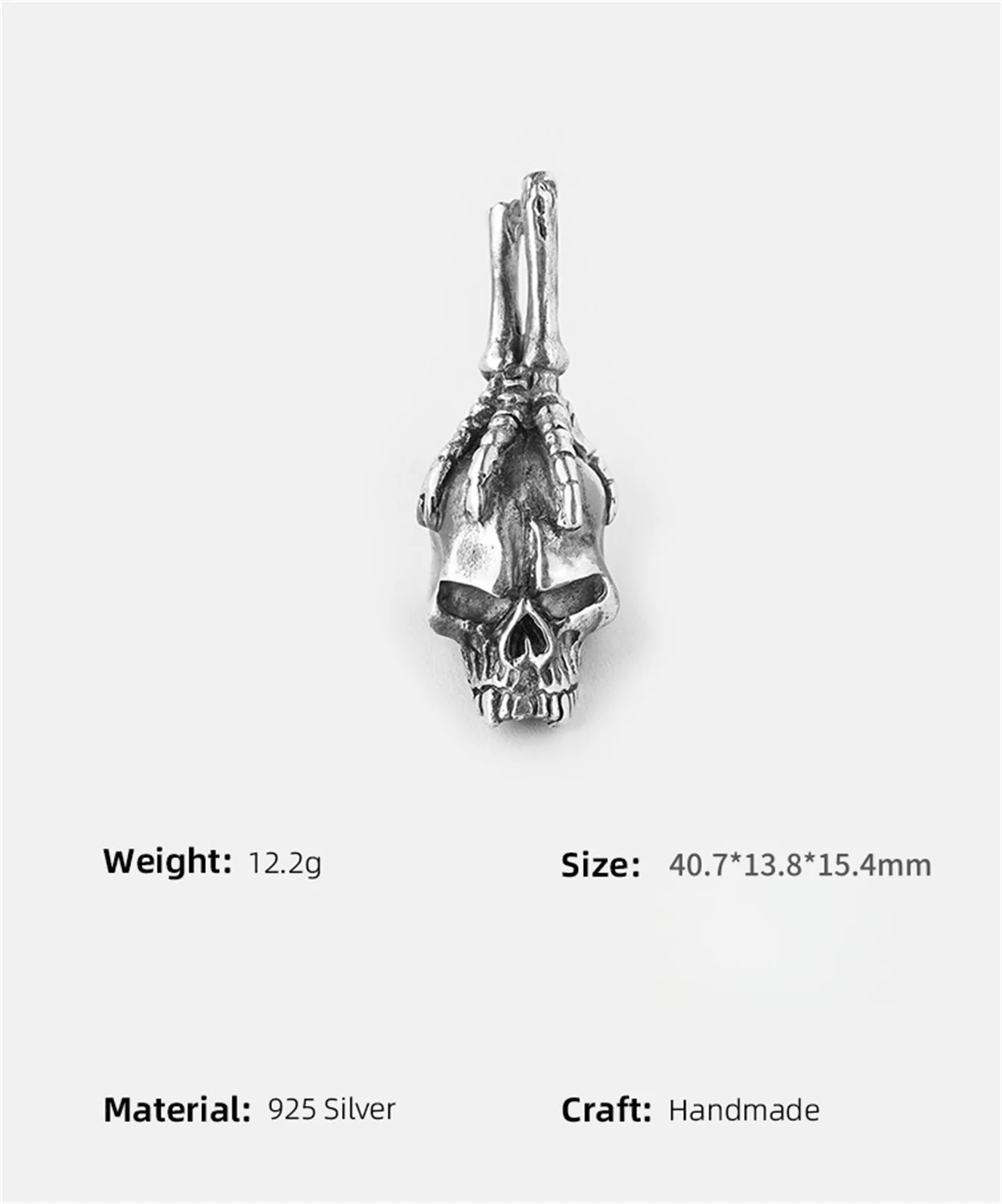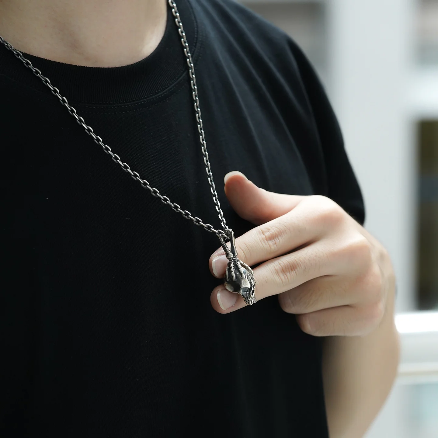 BOCAI S925 Sterling Silver Pendant for Women Men Retro Skeleton Claw Skull Charm Amulet Punk Street Dark Style Jewelry Wholesale