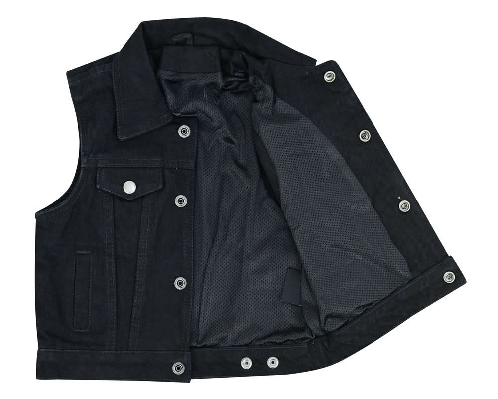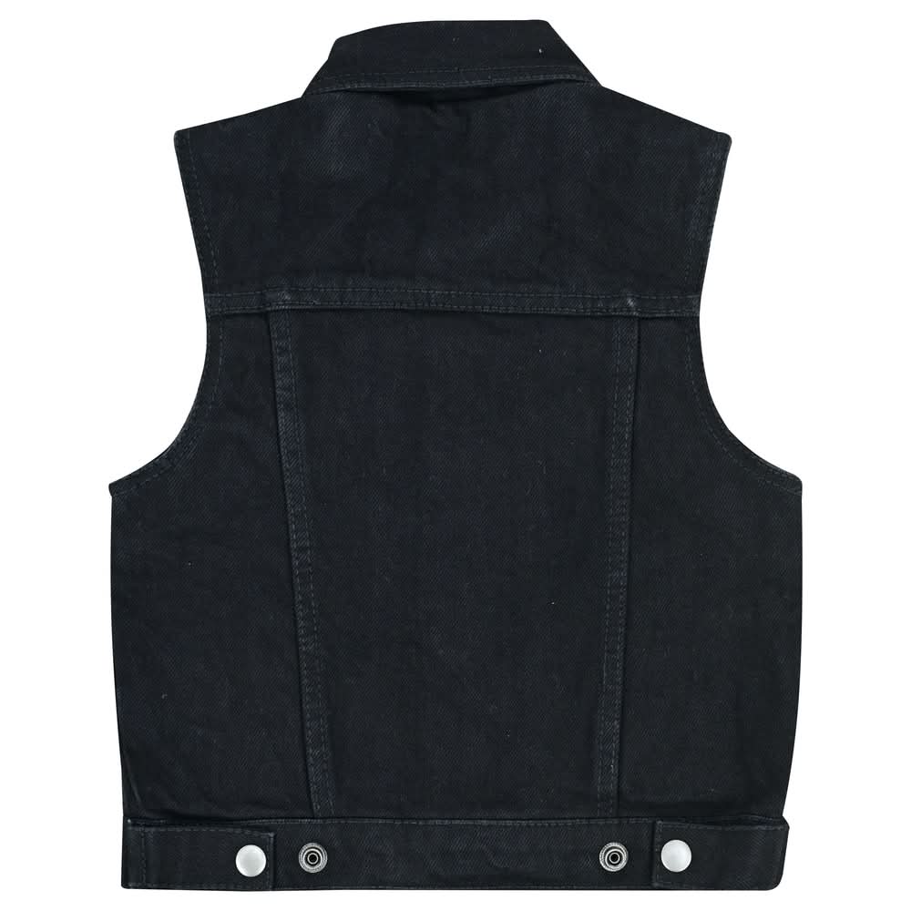 Revamp your kid's look with our kid's premium denim vest, featuring a front-open design and gunmetal snaps for effortless style. Stay organized on the move with practical pockets and enjoy a customized fit with the back snaps.