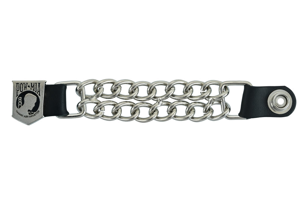 The vest extender also features a chrome motorcycle chain design, giving it a rugged and stylish look.