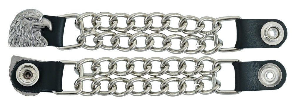 The vest extender also features a chrome motorcycle chain design, giving it a rugged and stylish look.