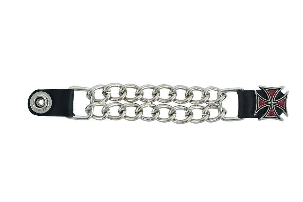 The vest extender also features a chrome motorcycle chain design, giving it a rugged and stylish look.
