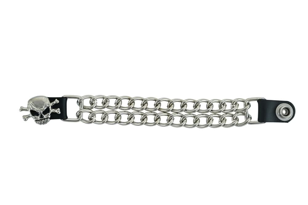 The vest extender also features a chrome motorcycle chain design, giving it a rugged and stylish look.