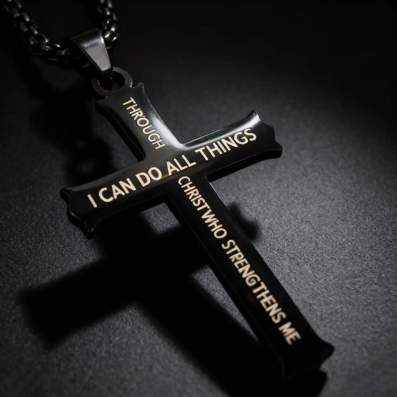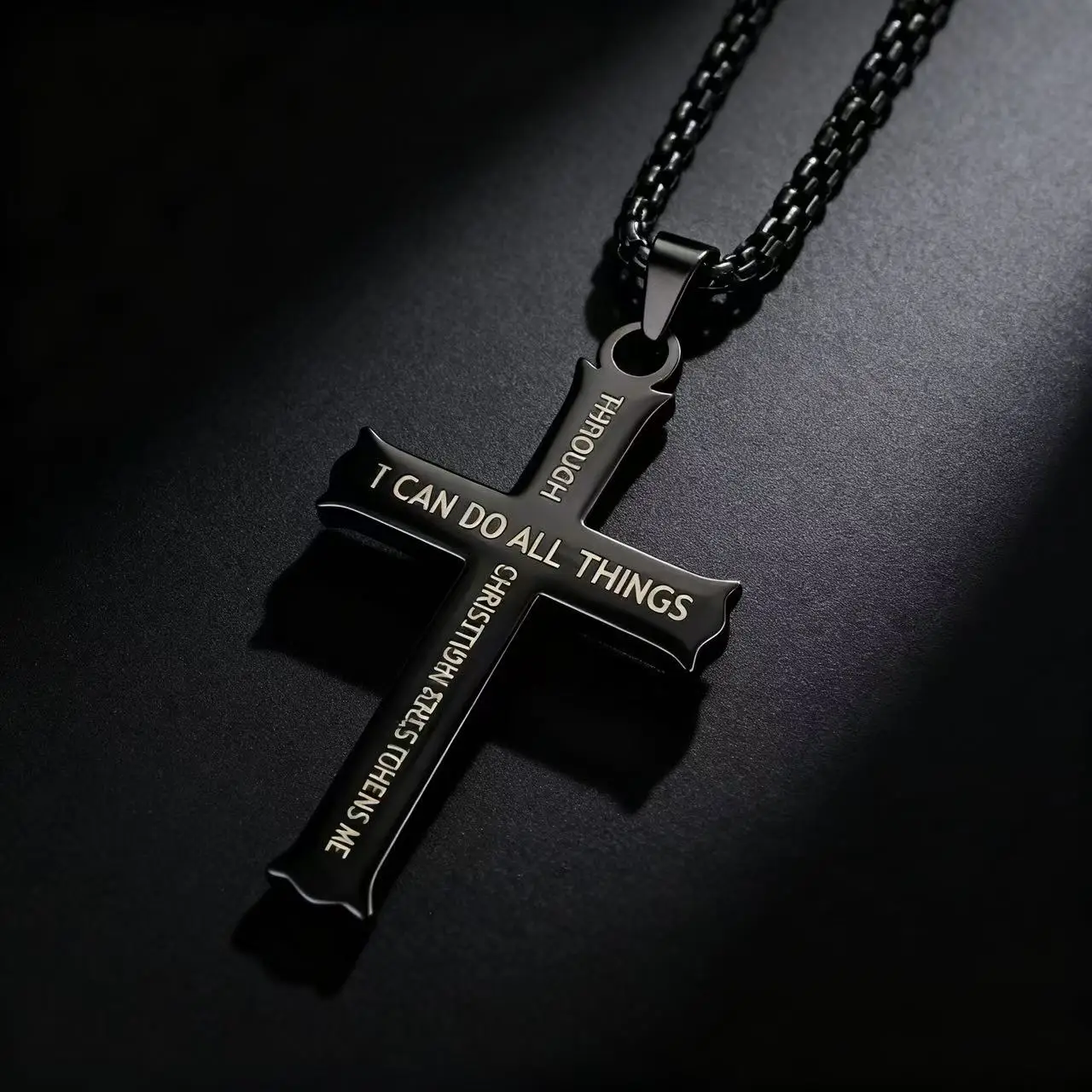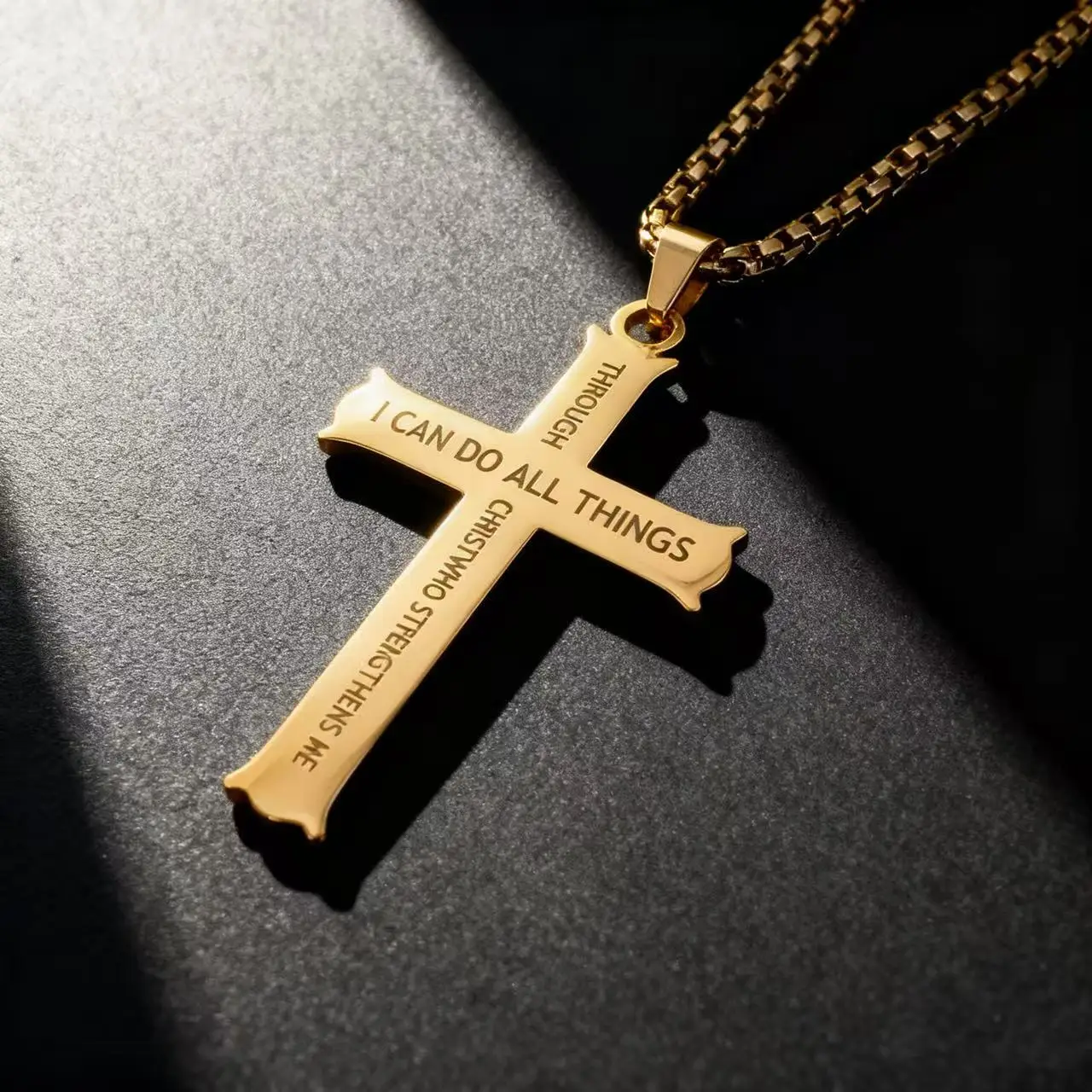 With its sleek design and religious symbolism, this pendant serves as a fashionable accessory that doubles as a message reminder.